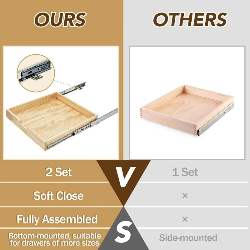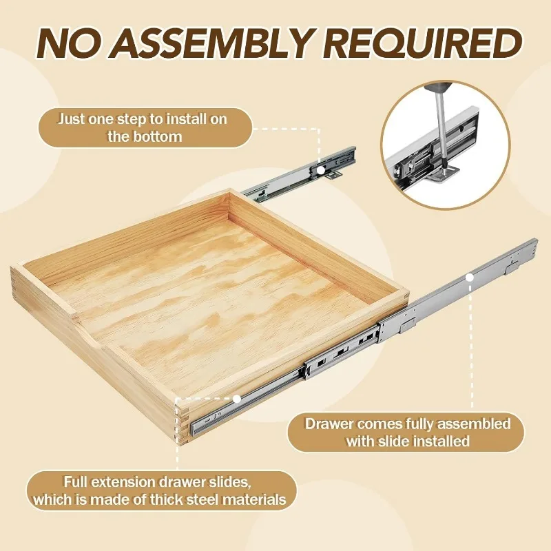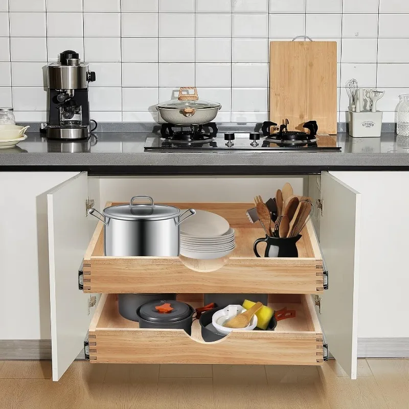 2 Set Pull out Tray Cabinet Organizer Wooden Pull out Drawers storage Slide out Pantry Shelf for Base Cabinet