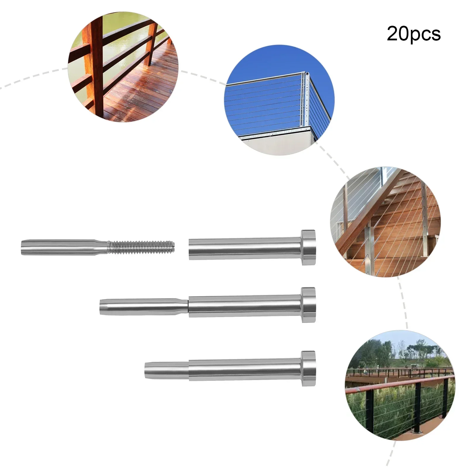 316 Stainless Steel Cable Railing Hardware Kit, 3/16″ Wire Rope Compatible for Outdoor Indoor Balustrade Installation