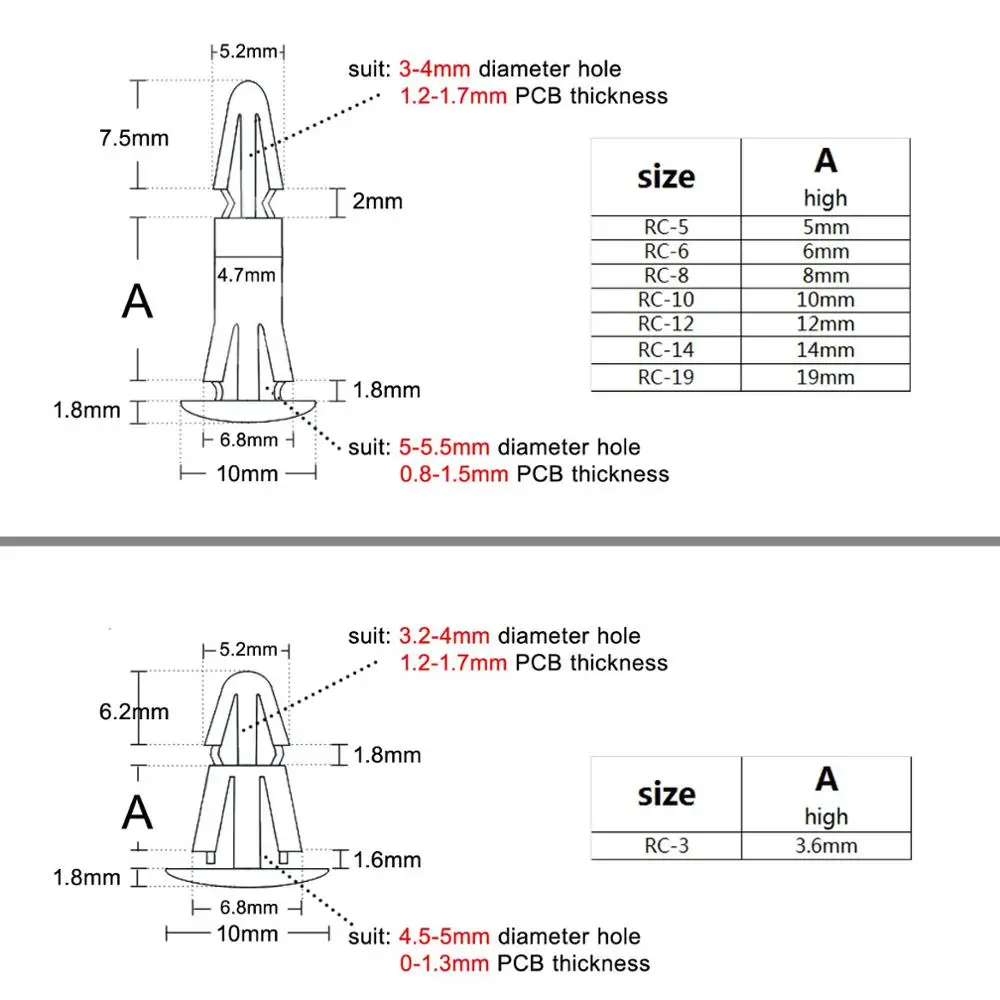 Be the first to review “50pc Nylon Plastic Standoff Spacer Rivet Push In Lock Clip Fixed Support PCB Circuit Board for 3-4mm 4.5-5.5mm Hole Chassis” Cancel reply