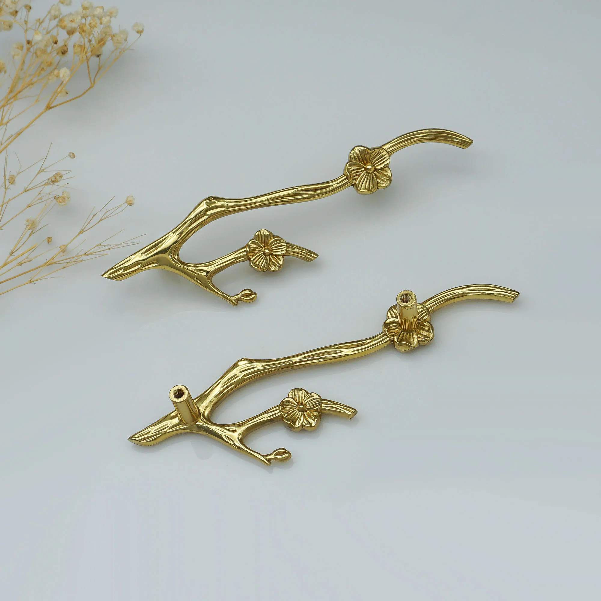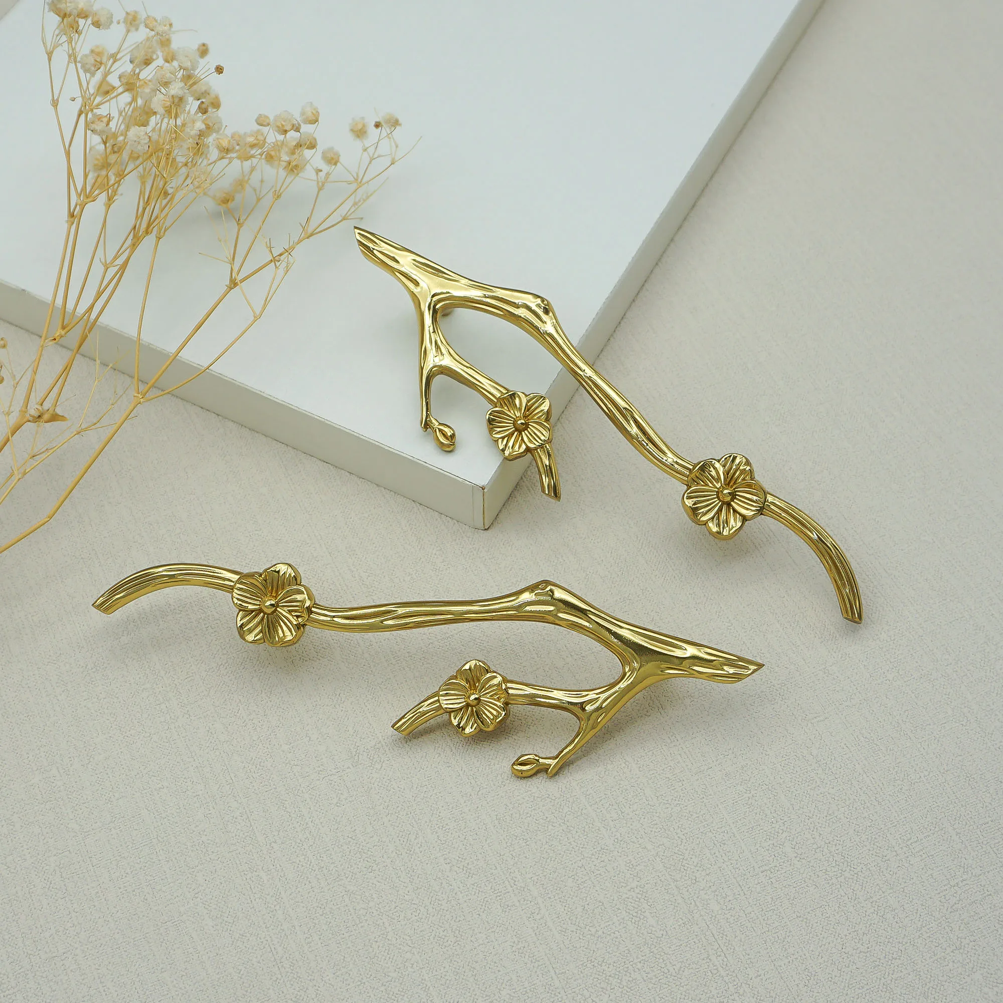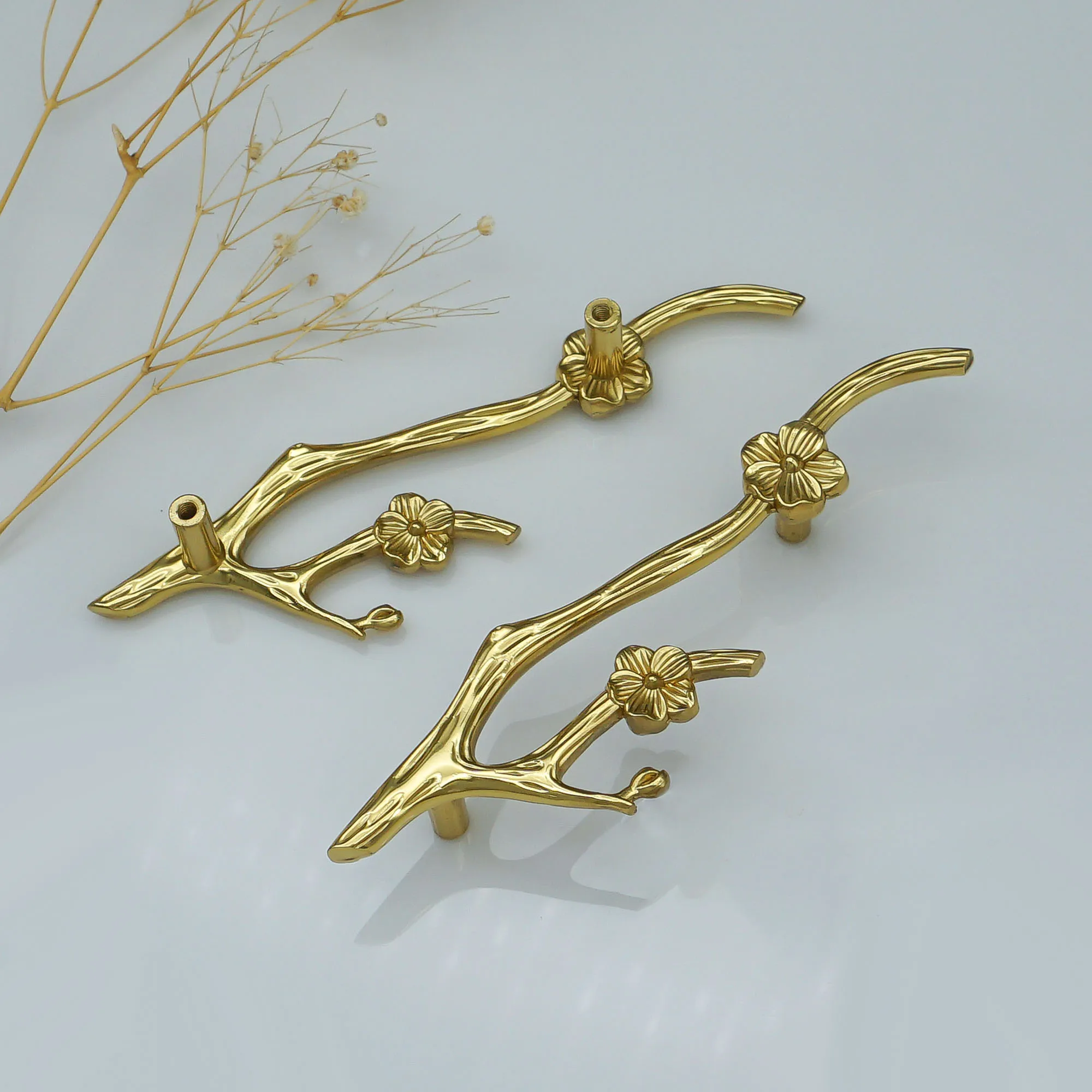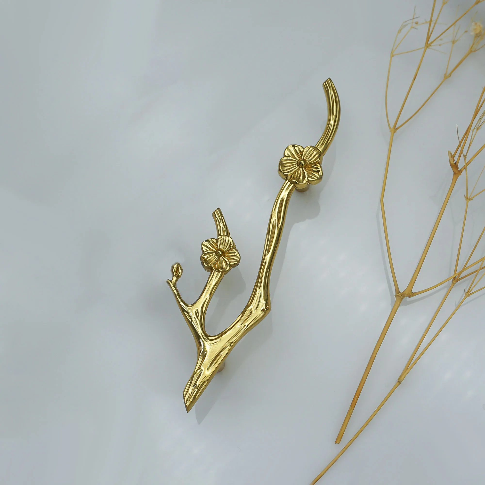 Creative Brass Flower Branch Cabinet Pulls Home Decor Wardrobe Handles Light Luxury Kitchen Accessories Furniture Hardware