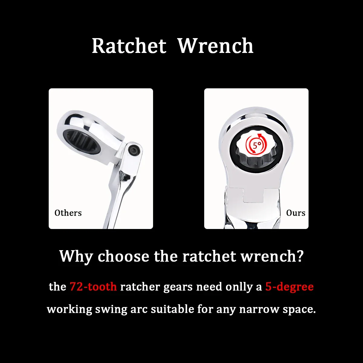 Ratchet Wrench of Keys Spanner Set Hand Tool 72-Tooth Ratcheting Flexible Head Mirror Finish 6mm-27mm Auto and Home Repair 1 pcs